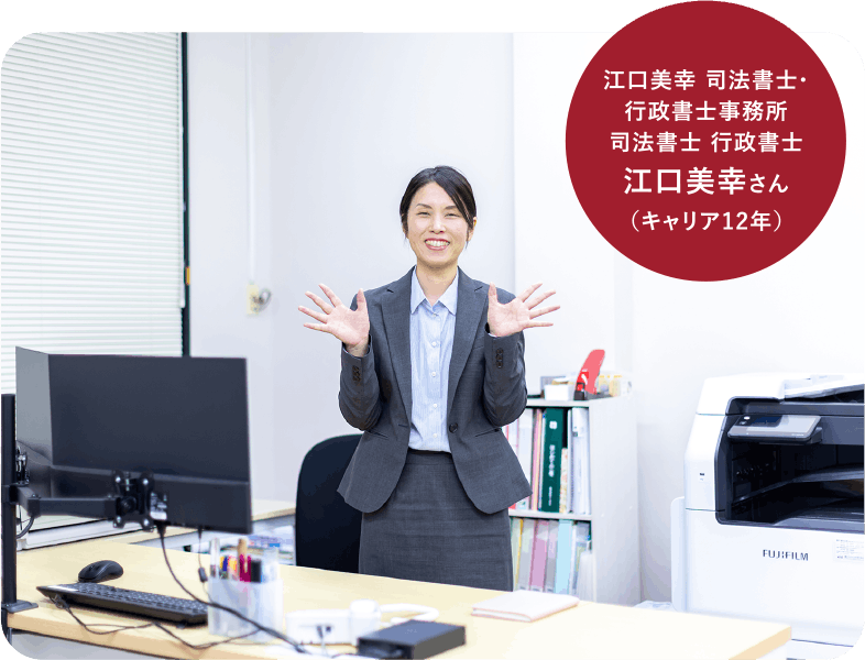 世の中の秩序を守る法律。その学びに目覚め、宅地建物取引士を皮切りに、行政書士、司法書士の資格を取得しました。争うことなく平和的な解決を目指す、司法書士の仕事は天職。依頼主の方に喜んでいただくことが、一番のやりがいです。